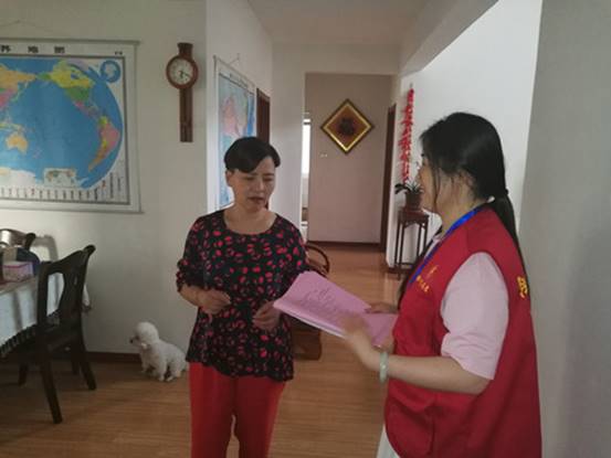志愿者在文昌花園7號樓居民家進(jìn)行走訪宣傳
