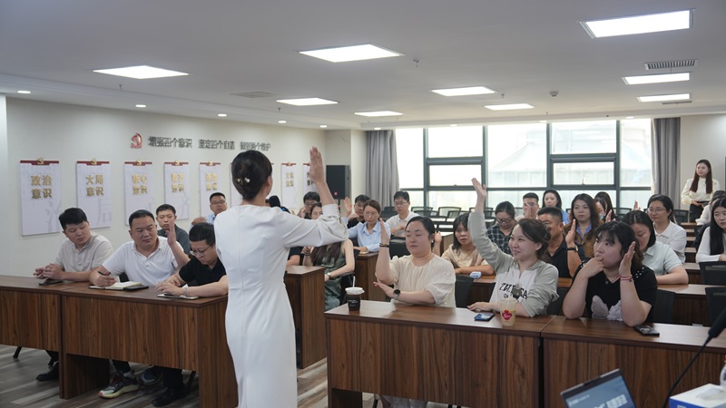 培訓緊扣三大核心議題展開:首先聚焦于臺風塑造,講師以登臺四步法與六大經(jīng)典手勢為引,通過生動互動與實操演練,讓學員們輕松掌握臺風氣場的精髓;隨后,深入探索表達狀態(tài)的激活之道,傳授了如何使聲音飽滿有力、情感充沛、引人入勝的秘訣;最后,引入金字塔表達結(jié)構(gòu),從主題凝練、框架構(gòu)建、分類明確到語言精煉,全方位提升學員的溝通能力。